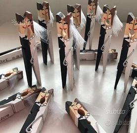 Mollette dipinte a mano raffiguranti mini-sposini utilizzabili come porta polaroid, segnaposto, decorazione bomboniera, o semplicemente come desiderate voi!