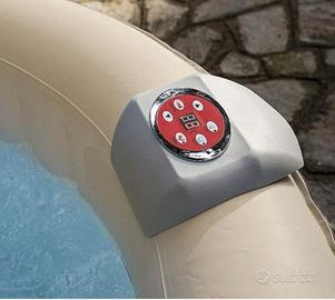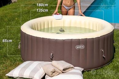 Spa gonfiabile riscaldata. Programma idromassaggio, regolazione temperatura. Ottimo stato con 2 panche in plastica rotonde. Perfettamente funzionante.