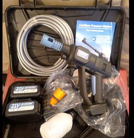 Idropulitrice a Batteria, 21V Idropulitrice Elettrica Portatile con 2 Batterie e Tubo da 5M, Lavatrice Senza Fili per Auto, Giardino, Terrazza, Prato e Irrigazione
