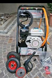 Questa idro pulitrice motorizzata con 6,5 HP e 2500 la pressione PSI di lavoro basse emissioni e motore economico, che è gestito con combustibile normale ed è progettato per l’uso professionale. L’idro pulitrice è utilizzato da molti clienti per la pulizia del tetto, la pulizia di pietra e pulizia auto / camion ecc .. 4 ugelli diversi per ogni area di applicazione e un tubo flessibile ad alta pressione lungo 10 m sono inclusi. Gli ugelli sono facili da installare poiché sono dotati di un raccordo rapido. IDROPULITRICE 180 BAR 6,5 HP Motore: Benzina 4 Tempi Avviamento: Manuale con Autoavvolgente