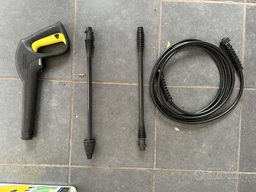 L’idropulitrice include anche una pistola ad alta pressione, un tubo flessibile di 3 metri e due lance.