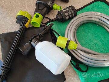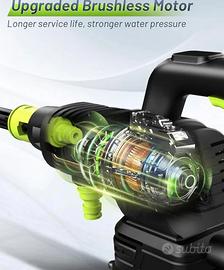 Idropulitrice a batteria Lambluefly, potente e senza fili. Ideale per lavare auto, moto, bici o per pulire balconi e giardino senza l'ingombro di cavi o rubinetti fissi. 🔥 CARATTERISTICHE TOP: Potenza: Fino a 120 Bar con motore Brushless (più resistente e duraturo). 3 Livelli di Pressione: Regolabile in base allo sporco da trattare. Ugello Multifunzione 6-in-1: 6 modalità di getto diverse (0°, 15°, 25°, 40°, doccia, alta pressione). Auto-adescante: Grazie al tubo da 5m con filtro, può pescare acqua da qualsiasi fonte (secchio, tanica, piscina o lago). Ultra Leggera: Pesa solo 1,4 kg, facilissima da manovrare. ⚠️ IMPORTANTE - BATTERIE NON INCLUSE: L'idropulitrice è venduta senza batteria. È compatibile con le comuni batterie da 18-21V di vari elettroutensili (tipo Makita BL1830, BL1850, ecc.). 📦 CONTENUTO DEL KIT: 1x Idropulitrice Lambluefly 1x Ugello 6-in-1 + Ugello per schiuma (foam cannon) 1x Tubo aspirazione 5m + Filtro acqua Borsa portaoggetti, panno auto e manuale. ✅ Stato: Nuova.