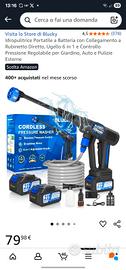 Idropulitrice Portatile a Batteria con Collegamento a Rubinetto Diretto, Ugello 6 in 1 e Controllo Pressione Regolabile per Giardino, Auto e Pulizie Esterne