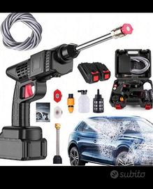 Idropulitrice a pressione potente senza fili a 2 batterie ricaricabili,ad alta potenza..pistola ad acqua elettrica portatile per lavaggio auto, pulizia di pavimenti e recinzioni, ugello 6 in 1, attacco per rubinetto, attacco per bombola, tubo flessibile da 5 m.