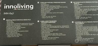 Innoliving Idropulitrice Senza Fili INN-647 Ricaricabile 3000mAh con 6 Regolazioni e 7 Accessori, Adattatore per Bottiglia, Contenitore Sapone incluso, Batteria 18,5V 3000mAh e Caricabatteria