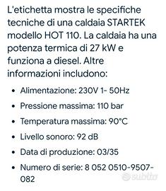 Vendo idropulitrice Startek a gasolio con doppia temperatura acqua calda e fredda usata poco