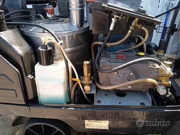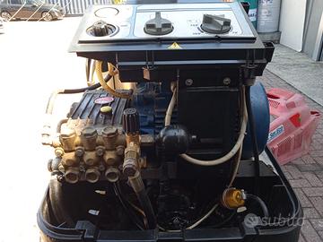 Idropulitrice trifase produzione acqua calda, la macchina è ricondizionata. Pressione dell'acqua 190 bar (16 litri al minuto), 12 metri di tubo ad alta pressione compreso di lancia.