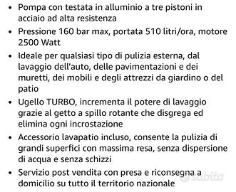 Vendo idropulitrice completa di tutti gli accessori in foto non funzionante non parte piu la vendo per pezzi di ricambio o per chi la sa aggiustare O messo le foto di amazon perche ce lo nella taverna e non riesco a fare le scale Vendo anche accessori separatamente a chi interessano