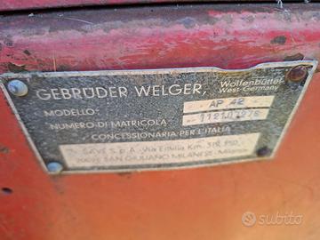 Vendo imballatrice Welger mod. AP 42 larghezza pickup 160cm, per ballette rettangolari 40x30xL variabile, in ottime condizioni. Macchina sempre tenuta al coperto con manutenzione e lubrificazione periodica. Legatori in ottimo stato, non hanno mai avuto problemi e funzionano alla perfezione. Macchina funzionante e pronta all'uso. Per info prezzo chiamare il 348.9056941.