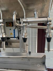 Imbottigliatrice manuale a 6 vie, acciaio, funzionante e poco ingombrante