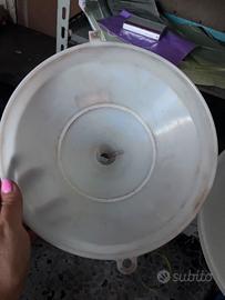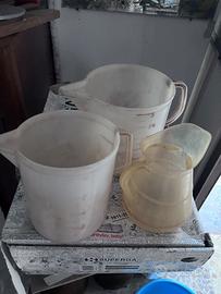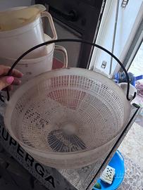 Vendesi 4 imbuti ,3 brocchette per misurare il vino varie misure ,1 cestino per passare le vinacce e tappi per damigiane.