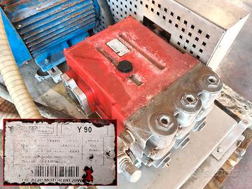 impiantino pompa pistoni alta pressione usato, si tratta di un sistema di pompaggio con pompa a pressione a 3 pistoni tuffanti di marca Comet mod. Y90 max. 60 bar completa di motore funzionante a 380v (vedi filmato) dimensioni: 111X63cm h37cm