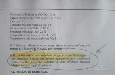 Per errato acquisto cedo impianto completo della Cillit per la denitrificazione., nuovo mai usato ancora imballato.