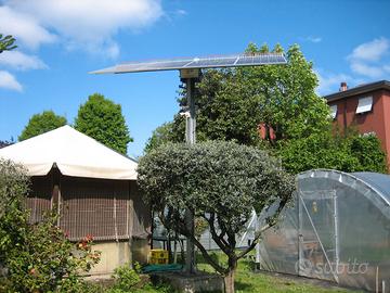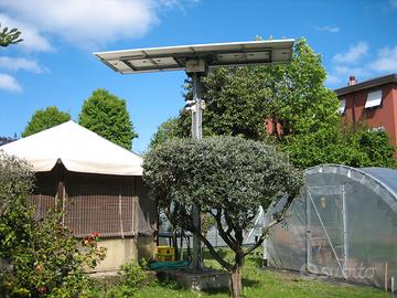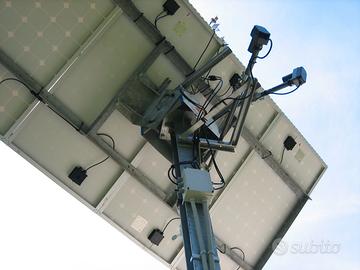 Parte elettronica 800,00 euro Impianto fotovoltaico "stand alone" da 1500 watt, comprensivo di Regolatore di carica batterie MPPT 60 A 12-24-36-48 V + Inverter 1500 W-24 V ad onda sinusoidale pura + 2 Batterie AGM da 202 AH 12 V + 4 Pannelli fotovoltaici da 340 W 12 V. Parte meccanica per l'inseguimento solare 900,00 euro Il meccanismo comprensivo di Centralina elettronica MiniTrack con display che comanda i movimenti dei pannelli + Pulsantiera con cavo da 10 m per comandare i movimenti dei due assi in Manuale e Automatico + 2 motori lineari che permettono l'inseguimento del sole da Est a Ovest e da Azimuth a Zenit + Anemometro che fa sollevare i pannelli in orizzontale quando c'è forte vento e il tutto si trova sulla sommità di un palo in ferro a 4,5 mt. di altezza ma che con opportuna modifica si può ridurre ad un'altezza inferiore. N.B. Si può acquistare anche solo la parte elettronica, ma in questo caso non c'è l'inseguimento solare.