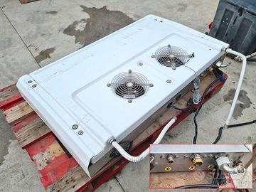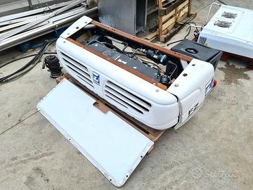 impianto frigo per furgone usato, si tratta di un motore frigo da camion di marca Zanotti mod. SFZ238T1081F/TBI forse del 2016 adatto per il trasporto refrigerato su camion con montaggio a naso, installato sulla parete anteriore della scatola e con varie configurazioni di evaporatori e ventilatori per tutti i tipi di veicoli. l'offerta include anche il compressore gas per il motore del mezzo di marca Valeo mod. TM16X3, manca lo strumento di controllo.