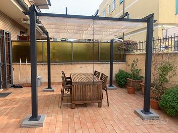 Gazebo quadrato 3x3 metri per giardino in alluminio. Due anni di vita, ottimo stato. Telo un po' usurato dal sole (funzionante, a discrezione della persona l'eventuale sostituzione).