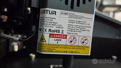 Vendo per inutilizzo incisore laser modello ortur R2, con modulo laser da 20W + modulo IR 1.3W per incidere acciaio, legno, acrilico e tanto altro.