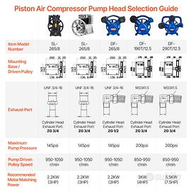 • Venditori Affidabili di Esperienza • Spediamo ovunque, anche in Contrassegno • Vendiamo solo articoli Nuovi di prima qualità • Contattaci per qualsiasi info necessaria 【STRUTTURA ROBUSTA】 - Il cilindro della nostra pompa del compressore d'aria a 2 stadi, con la camicia del cilindro in ghisa, presenta materiale in ghisa al boro. Il suo guscio è di una struttura in alluminio pesante, resistente e di facile manutenzione. 【DESIGN A DOPPIO CILINDRO】 - La pompa del compressore d'aria, che adotta due cilindri in ghisa e una testata con tecnologia di pressofusione, ha una forte funzione di dissipazione del calore e funziona in modo stabile e silenzioso. 【FUNZIONAMENTO SEMPLICE】 - Grazie alla biella dell'albero motore di alta qualità della macchina a pistoni e al collaudato design della trasmissione a cinghia, costruita con una forte resistenza all'usura, buone prestazioni di compressione e funzionamento regolare. 【DESIGN SCIENTIFICO】 - Con cuscinetto a rulli conici, anello del pistone con cuscinetto a rullini ed elementi di controllo, il nostro compressore ha un'elevata capacità portante. C'è anche una finestra di visualizzazione dell'olio per osservare la quantità di olio in tempo reale. È conveniente per il rifornimento. 【AMPIA APPLICAZIONE】 - Questa pompa compressore bicilindrico da 12cfm è una pompa monostadio a 2 cilindri di alta qualità adatta per l'uso con motori elettrici e motori a benzina da 6,5 hp. È ideale per la decorazione interni, la fonte di alimentazione di apparecchiature pneumatiche, la riparazione e la manutenzione di apparecchiature e altri settori.