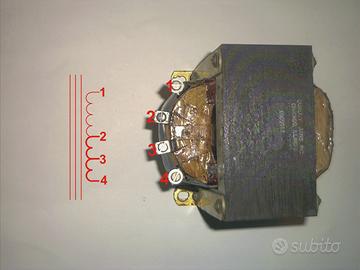 Adatta a sopportare forti correnti, si compone di 3 avvolgimenti in serie con alimentazione ai morsetti 1, 2, 3, 4. come visibile nello schema dell'ultima immagine.