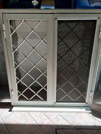 Inferriata completa di maniglia e zanzariera a calamita colore ral 9010 avorio verniciata a polvere con telaio in lamiera piegata e parastrappi alle ante. Ritiro e trasporto a carico dell’acquirente misure H123xL110 Prezzo di realizzo.