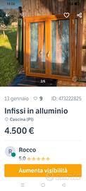 vendo infissi in alluminio termico con vetro camera e antisfondamento provenienti da villetta costruita circa quindici anni fa il valore di acquisto che e stato pagato al momento dell acquisto e di 18000 euro vendo anche sigolarmente due porte finestre e tre finestre sono a tre ante la finestra 75x57 non e più disponibile se acquistare separatamente il prezzo e di 120 euro a mq
