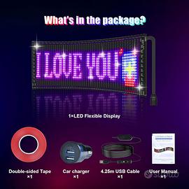 Insegna luminosa a LED flessibile, programmabili e personalizzabile tramite un'app, segue ritmi musicali etc.