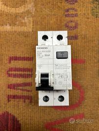 Interruttore magnetotermico differenziale 20A 0,03A 30mA C20A 4500A 1P+N 2 moduli Siemens 5SU13531KK20 usato e funzionante.