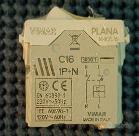 1 interruttore Vimar plana Interruttore automatico magnetotermico 1P+N C 16 Interruttore MT 1P+N C16 120-230V bianco Interruttore automatico magnetotermico 1P+N C 16, 120-230 V~ 50-60 Hz, p.i. 3000 A, bianco