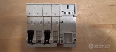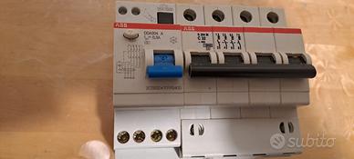 Interruttore automatico magnetotermico differenziale da 32 A con potere d'interruzione 10 KA ( altissima sensibilità). Il differenziale ha una IAn da 0,3 A.