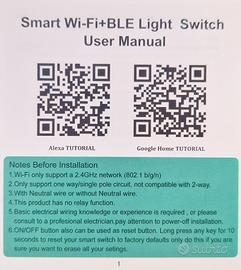 Realizzato in plastica resistente, questo interruttore intelligente garantisce prestazioni e affidabilità di lunga durata. La sua costruzione robusta assicura che possa gestire l'uso quotidiano senza problemi.