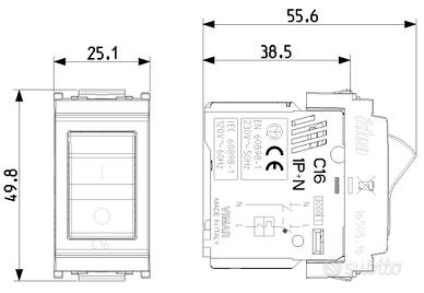 Interruttore automatico magnetotermico 1P+N C 16, 120-230 V~ 50-60 Hz, p.i. 3000 A, bianco