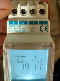 Il suo impiego è in alternativa allutilizzo di un intrerruttore crepuscolare o ad un interruttore orario digitale. Facile da impostare, il dispositivo gestisce automaticamente, con linserimento della località dinstallazione, in relazione al giorno dellanno, laccensione o lo spegnimento dei carichi elettrici ad esso collegati.Dispone di due uscite relè che possono essere programmate in relazione allorario di alba e tramonto o ad orari fissi come in un normale orologio digitale.70 programmazioni astronomiche/orologio digitale.Possibilità modifica (anticipo/posticipo) orario astronomico.