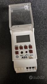 Interruttore orario digitale con programmazione giornaliera e settimanale. Marca AEG modello NVE 100. Ottimo, perfettamente funzionante.