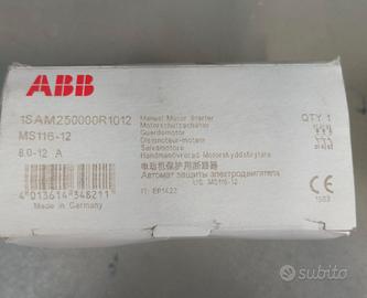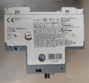 Interruttore salvamotore ABB modulare modello MS 116-12 Regolazione amperaggio da 8 a 12A Ingombro 45 mm (2 moduli e mezzo) Disponibile 1 PZ.