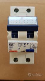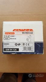 Interruttore Magnetotermico Differenziale Marca GEWISS GW 94126 Compatto Sigla Mdc 60 Numero poli 2 Curva C Corrente 10A Tipo AC Idn=0,03A Pot di interuz. 6000 N .Moduli 2 Disponibile 2 pezzi VIENE VENDUTO A 78 EURO in Internet Al singolo pezzo
