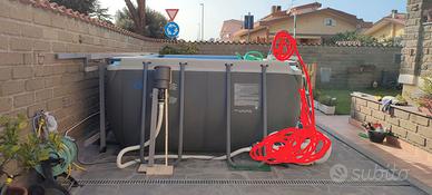 Vendo piscina Intex misure 549x274x132 ATTENZIONE Nella vendita è compreso solo il liner e tutte le strutture in ferro per montarla quindi tubi, accordi ecc. (non c'è ne pompa, ne valvole o tubi per l'acqua, scala), la piscina presenta un foro quadrato per montare uno Skimmer esterno come in foto ma NON in vendita. Quindi o si deve acquistare uno skimmer esterno o si può utilizzare per parti di ricambio o per fare toppe di liner.