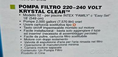 Vendo una pompa Intex da 7570 LT/h a cartuccia di tipo B (non compresa),mai usata, completa di 2 tubi e 2 valvole plunger.