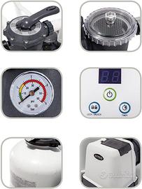 Vendo Pompa Intex 26646 - Filtro a Sabbia Krystal Clear, Flusso d'Acqua 7900 L/h, Flusso di Sistema 6000 L/h, Plastica, Bianco assieme a Intex Skimmer Di Superficie e Intex 29061 - Adattatore Tipo B con due tubi originali e sfere filtranti, 800g (Palline Filtro Piscina) sostituisce 28kg di Sabbia Ultra Leggera.