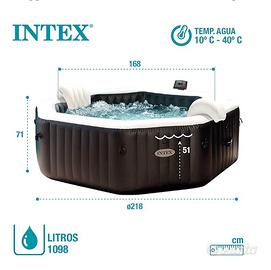 Intex 28462EX - PureSpa Vasca Idromassaggio Gonfiabile Jet&Bubble Deluxe Ottagonale, 6 posti, 140 Getti, Riscaldatore, Nero, 218x71 cm sistema salino o cloro ottimo prodotto tenuto molto bene