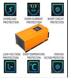 VEVOR 3000W Inverter a Onda Sinusoidale Pura, 12V Corrente Continua, 220V Corrente Alternata, con Caricabatterie CA Schermo LCD Convertitore Solare a Bassa Frequenza * Onda Sinusoidale Pura: L'onda sinusoidale pura fornisce corrente alternata di alta qualità con alta efficienza. Può guidare la maggior parte dei tipi di carico senza interferire con l'onda elettrica. Serve come una centrale elettrica mobile affidabile in quanto può funzionare senza problemi per lungo tempo. La nostra macchina può convertire CC 12V in CA 230V, con un tasso di inversione del 91%. Pertanto, può essere applicato a un impianto elettrico a 12V e ad apparecchiature standard da 230V. * Protezione Ottimizzata: Molteplici funzioni di protezione: protezione da sovracorrente, protezione da cortocircuito, protezione da bassa tensione, protezione da sovratensione. Ventola intelligente a temperatura controllata: la ventola è controllata dalla temperatura, silenziosa e a risparmio energetico. Inizia a funzionare solo quando la temperatura di esercizio raggiunge i 55 ℃. * Controllo Semplificato: Lo schermo LCD può visualizzare direttamente vari parametri in modo da poter osservare il valore della tensione di uscita e la carica della batteria. Macchina integrata multifunzionale, non è necessario acquistare un caricatore e un regolatore aggiuntivi. * Componenti Premium: Il transistor MOS può sopportare correnti di picco più elevate e fornire una tensione stabile. Il circuito stampato ad alta precisione con cablaggio chiaro e ragionevole offre precisione di tensione stabilizzata, garantendo prestazioni di sicurezza elevate e lunga durata. * Applicazione Estesa: È adatto per varie apparecchiature per ufficio ed elettrodomestici, come computer desktop, computor portatile, stampante, audio, TV, condizionatore d'aria, fornello a induzione, scaldabagno, lavatrice.