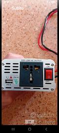 Inverter da 1000W per auto, camion, camper etc,permette di trasformare I 12Vdc con cavi in dotazione in 220VAc in una comoda presa internazionale, pratica ventola di raffreddamento, interrutore on-off e utile presa Usb. Misure 19cmx10cmx5,5cm.Nuovo ancora imballato mai stato utilizzato ne aperto perfettamente funzionante.