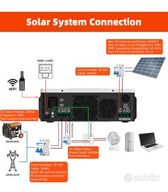 Descrizione Caratteristiche: Inverter a onda sinusoidale pura Intervallo di tensione di ingresso configurabile per elettrodomestici e personal computer tramite impostazione LCD Compatibile con la tensione di rete Riavvio automatico durante il ripristino dell'AC Protezione da sovraccarico/sovratemperatura/cortocircuito Funzione di avvio a freddo Doppio mppt a 6KW, tre mppt a 10KW Può funzionare il motore 3P con motore da 6KW, 1,5P+3P con 10KW Funziona a pieno carico solo con energia solare contattare whtsapp 3933721648