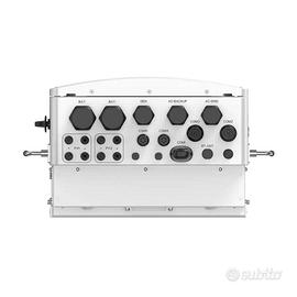 Attuale Corrente di ingresso massima: 40A / 40A Corrente massima di cortocircuito: 50A / 50A; Corrente di uscita massima: 22,8 A / 21,7 A; Corrente di uscita nominale della rete: 22,8 A / 21,7 A; Potenza Potenza massima utilizzabile in ingresso dell'impianto FV: 24 kW; Potenza nominale in uscita AC: 15kW Voltaggio Tensione CC massima in ingresso FV: 1000 V; Intervallo MPPT: 200~850V; Tensione nominale CC in ingresso FV: 550 V; Tensione di avviamento: 160 V; Frequenza Frequenza di rete nominale: 50 Hz / 60 Hz Fattore di potenza>0,99 (0,8 anticipato - 0,8 ritardato) Grado di protezione IP Grado di protezione IP66 Condizioni di lavoro Temperatura da -40 a +60°CDimensioni430 × 660 × 295 millimetri