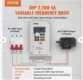 VEVOR Azionamento a Frequenza Variabile VFD 3HP 2,2KW 5A