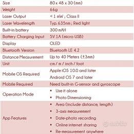 Misurazione a 3 assi di lunghezza, larghezza e altezza di un oggetto.