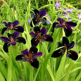 Iris acquatico dai fiori di color viola scuro con riflessi neri. Vanno coltivati immersi in acqua come piante da bordo vasca/ laghetto.Resistente al gelo e basse temperature