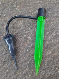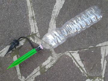 Irrigatori automatici di vario tipo per piante in vaso. Vendita in blocco. 8 pezzi Il tipo con tappo arancione (2 pezzi) va avvitato su una comune bottiglia di plastica, poi conficcato nel terreno. Ha un cono in ceramica porosa che rilascia gradualmente l'acqua nel terreno. Nel tipo con tappo marrone (5 pezzi) il tubicino va infilato in una comune bottiglia di plastica, ed il cono ceramico conficcato nel terreno. Il tipo con picchetto verde (1 pezzo) va inserito su una comune bottiglia di plastica (oppure in un tubo collegato a un serbatoio più grande), poi conficcato nel terreno. Ha alla base un irrigatore a goccia.