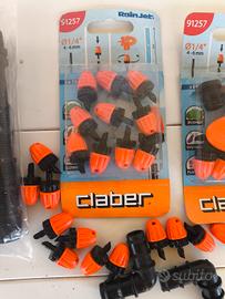 Vendo, in blocco, materiale vario per irrigazione giardino, prevalentemente formato dal micro irrigatori per impianti a goccia, ma anche connettori a gomito, tubi connettori tagliabili ed un adattatore per attacchi tubi dell'acqua.