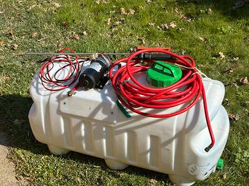 Serbatoio 100 litri per anticrittogamici o diserbo completo di pompa 12 V e cavi con morsetti per batteria 12 V ad esempio quella del trattorino. Quasi nuovo ( usato 3 volte). Non spedisco, ma consegno direttamente. Vicinanze Reggio Emilia.