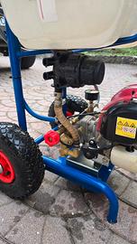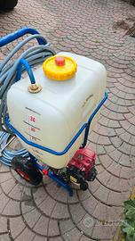 Vendesi irroratrice su carrello con serbatoio da 36 LT marca "La Regina" (Carrù - CN) , motore Honda GX25 4 tempi benzina perfettamente funzionante con pochissime ore di utilizzo. Presente un tubo da 10 metri, un secondo tubo da 26 metri (nuovo mai usato), n. 2 lance irroratrici e libretto di uso e manutenzione. Vendo per inutilizzo